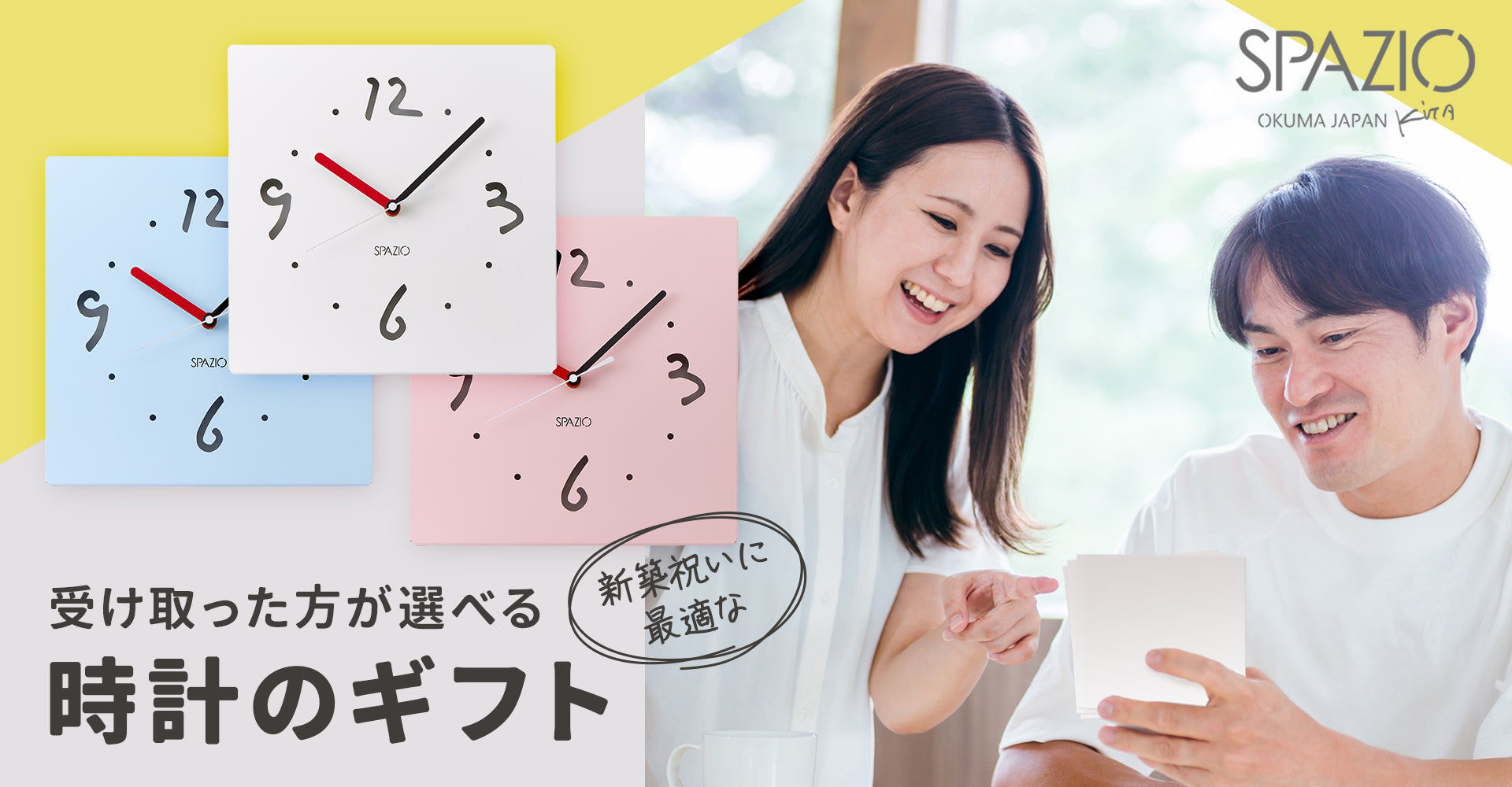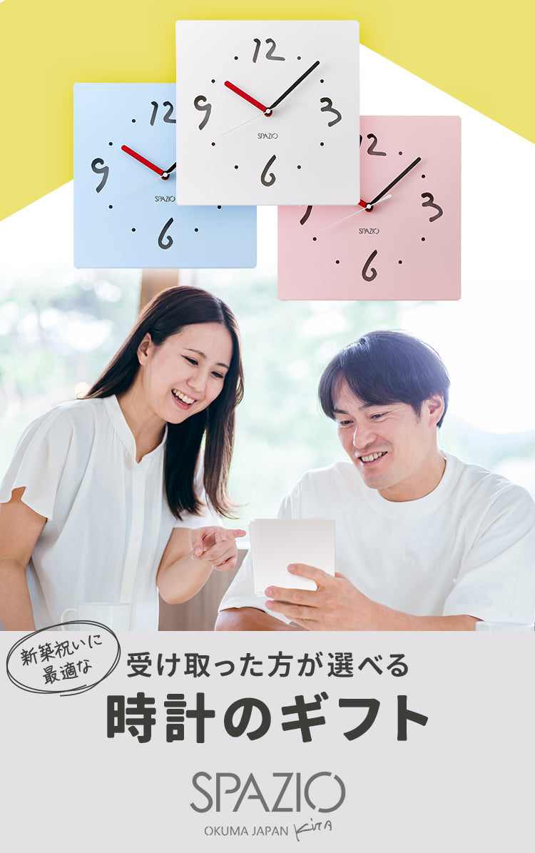 贈り先の方に掛時計・置時計の中からどちらか1点の「SPAZIO」をお選びいただく商品です。
